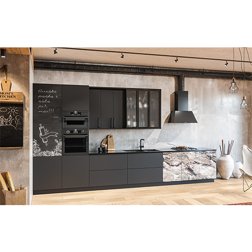Одним из особенных эффектов кухонного гарнитура NORMA является меловая/грифельная доска, которая позволяет оставлять заметки и записки на поверхности, создавая при этом особую атмосферу и эффектные декоративные элементы. Это очень удобно, если вы хотите оставлять сообщения для своих близких или просто делать список покупок.